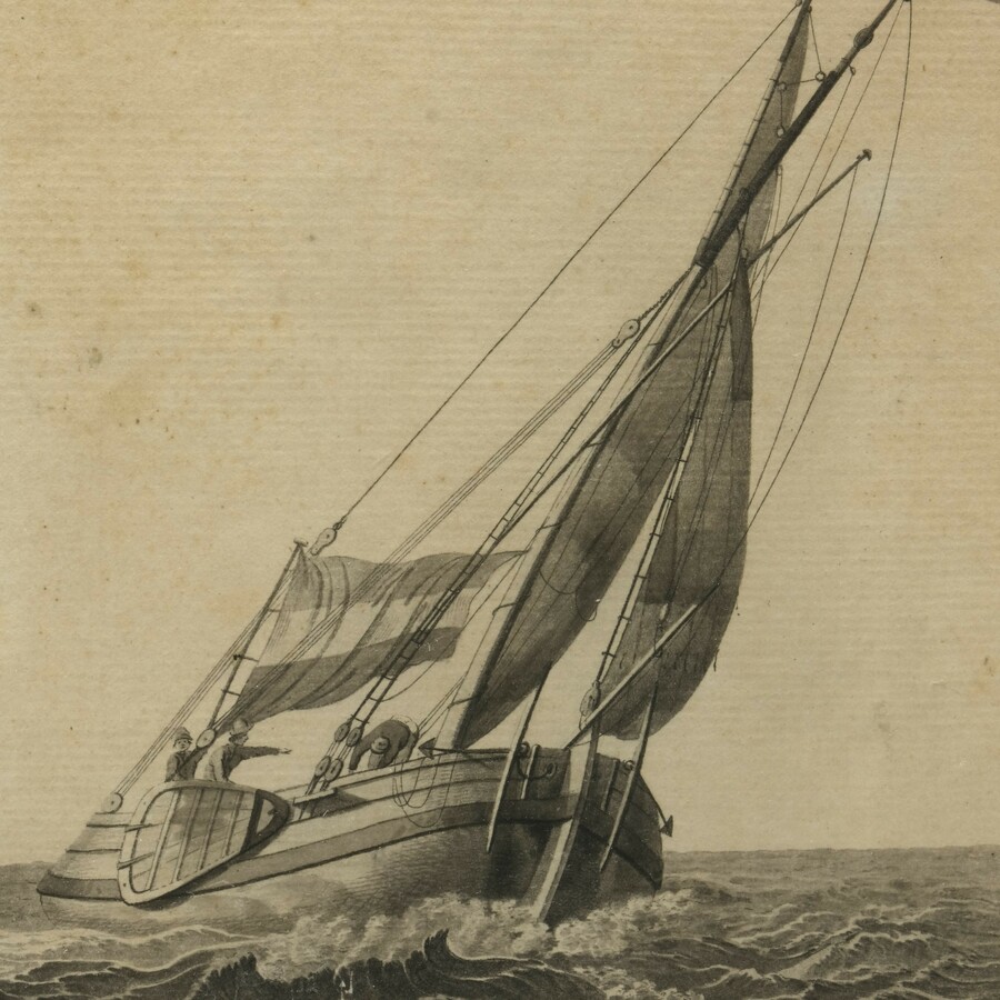 Inkttekening op papier. Gaffel op open water. Gesigneerd David Kleyne (1763 - 1805)