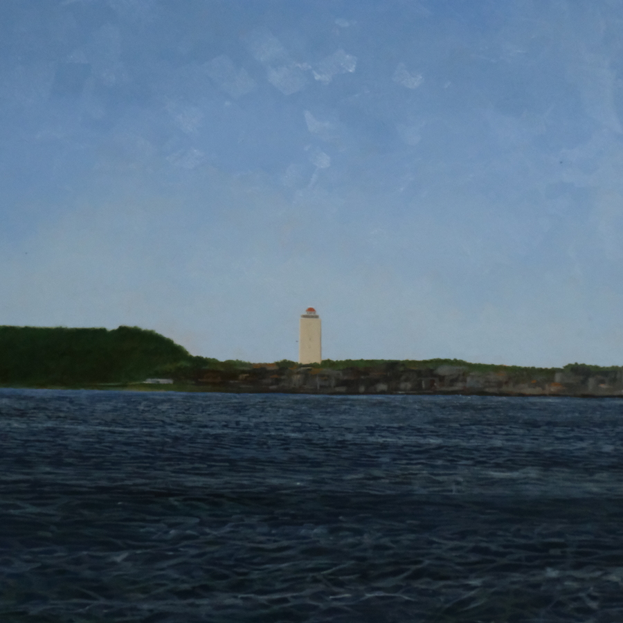 Schilderij, olieverf op paneel 60 x 164 cm in zilverkleurige lijst. Gezicht op Terschelling, gesigneerd Eduard Frieser (1955), gedateerd 2006
