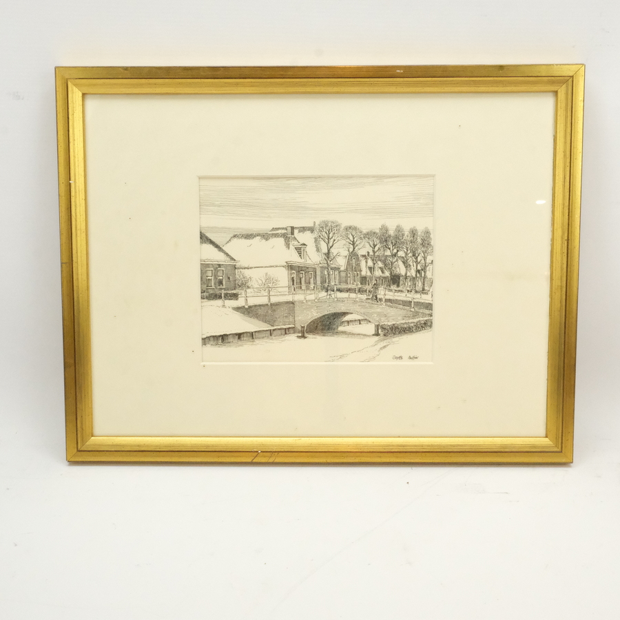 Tekening, potlood op papier in zilveren profiellijst. Op de achterzijde titel 'koets Leeuwarden'. Rechtsonder gesigneerd Piet Hein van Asperen (Harlingen 1895 - Leeuwarden 1969).