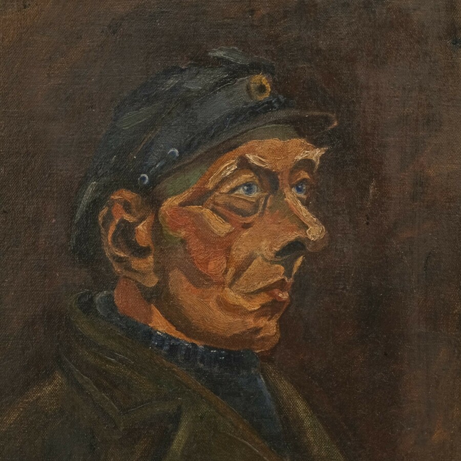 Schilderij, olieverf/marouflé. Titel "Schipper uit het armenhuis, Leeuwarden", rechtsonder gesigneerd Joh(annes) de Vries en gedateerd 1947. De Vries was lid van de maatschappij tot bevordering ...