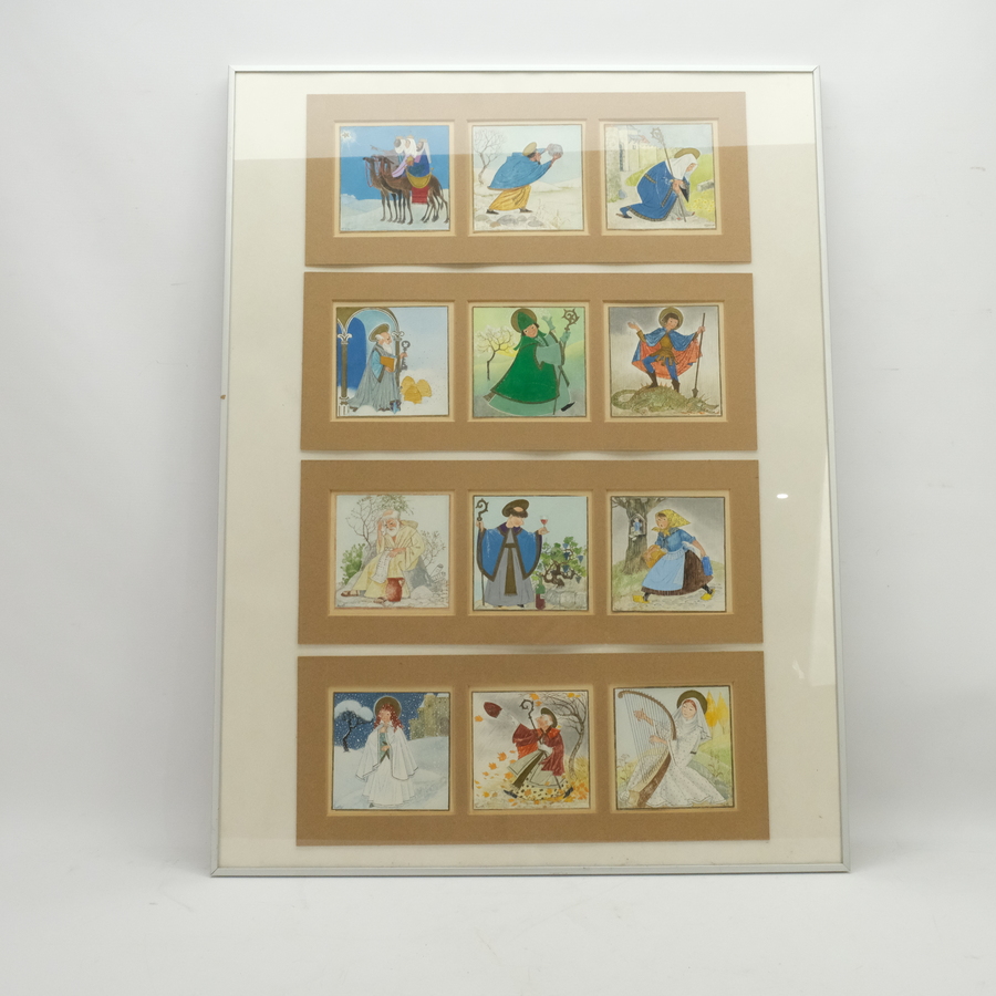 Lot van twaalf gouaches in één lijst, allen door Nans van Leeuwen (Amsterdam 1900 – Rotterdam 1995).