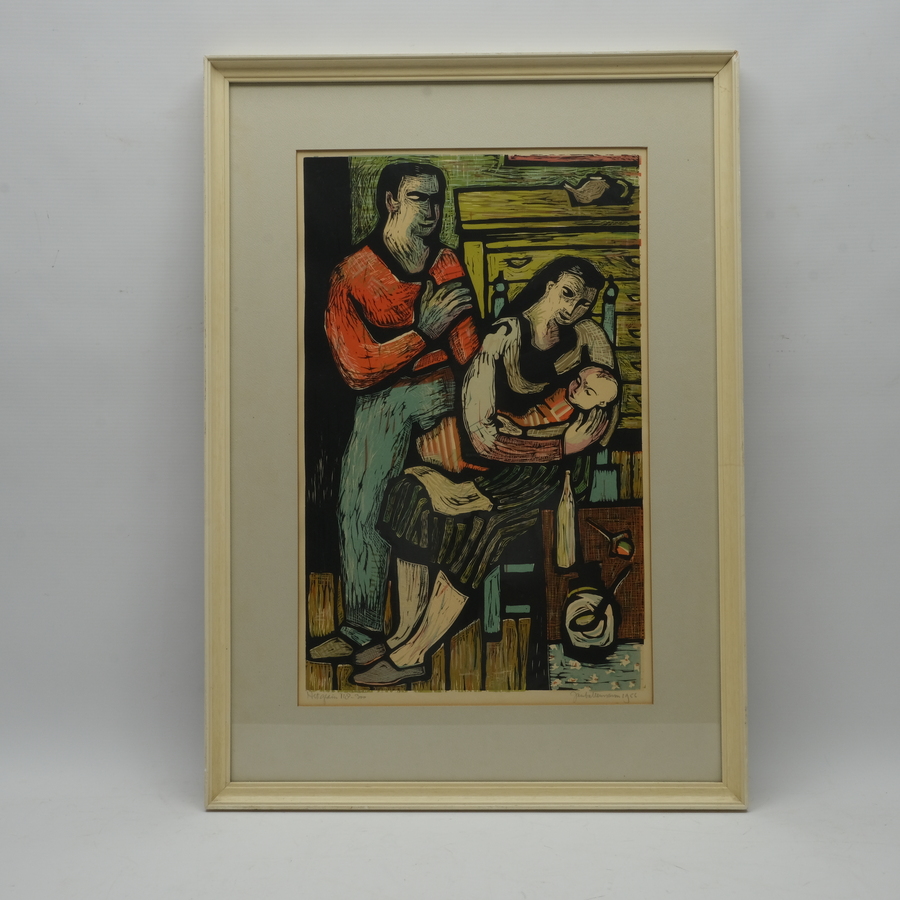 Zeefdruk, 28 x 44 cm. ‘Het gezin’, rechtsonder gesigneerd Jan Battermann (1909-1999), gedateerd 1956