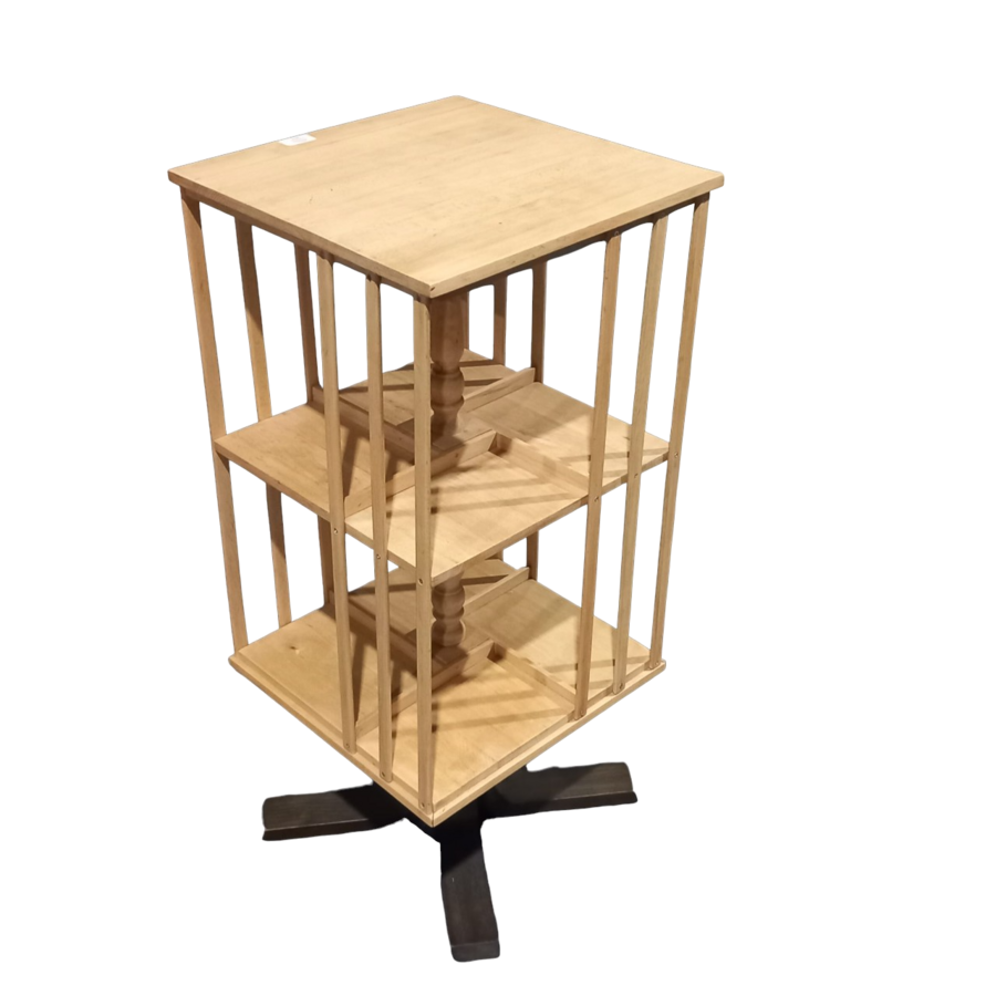 Een 20e eeuwse draaibare boekenmolen, ongelakt, op houten voet