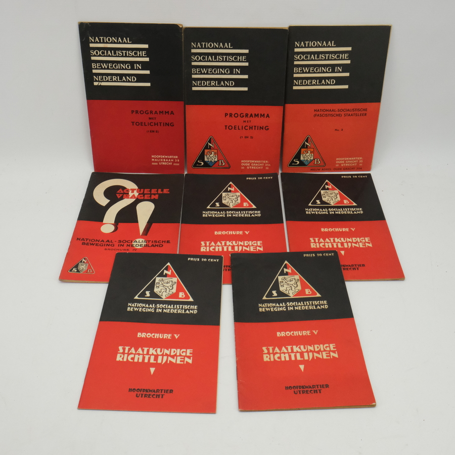Lot van zeven NSB boekjes: 2x deel 1 en 2 'Programma met toelichting' 1x deel 3 'Nationaal-Socialistische (Fascistische) staatsleer, 1x deel 4 'Antwoord van het Nederlandsche Nationaal-Socialism...