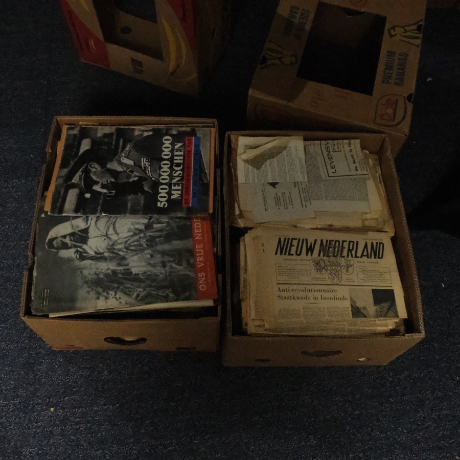 Twee dozen met kranten en krantenknipsels, WOII en bevrijding
