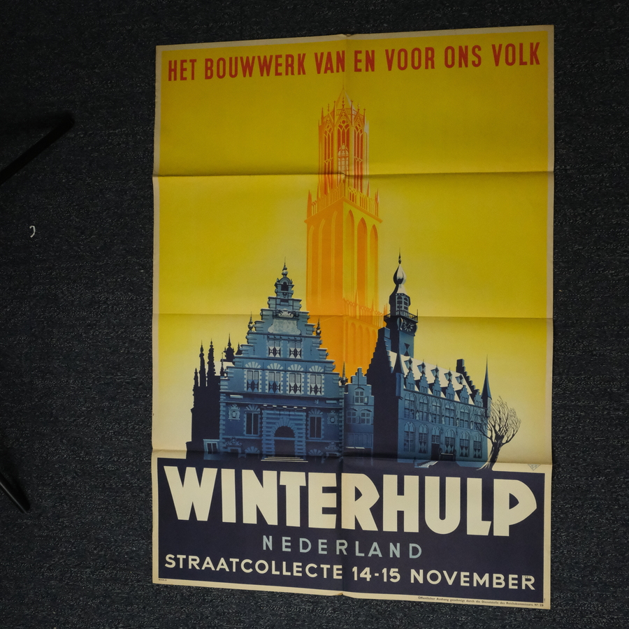 Groot affiche, 'Het bouwwerk van en voor ons volk', 'Winterhulp Nederland', 'straatcollecte 14-15 november'