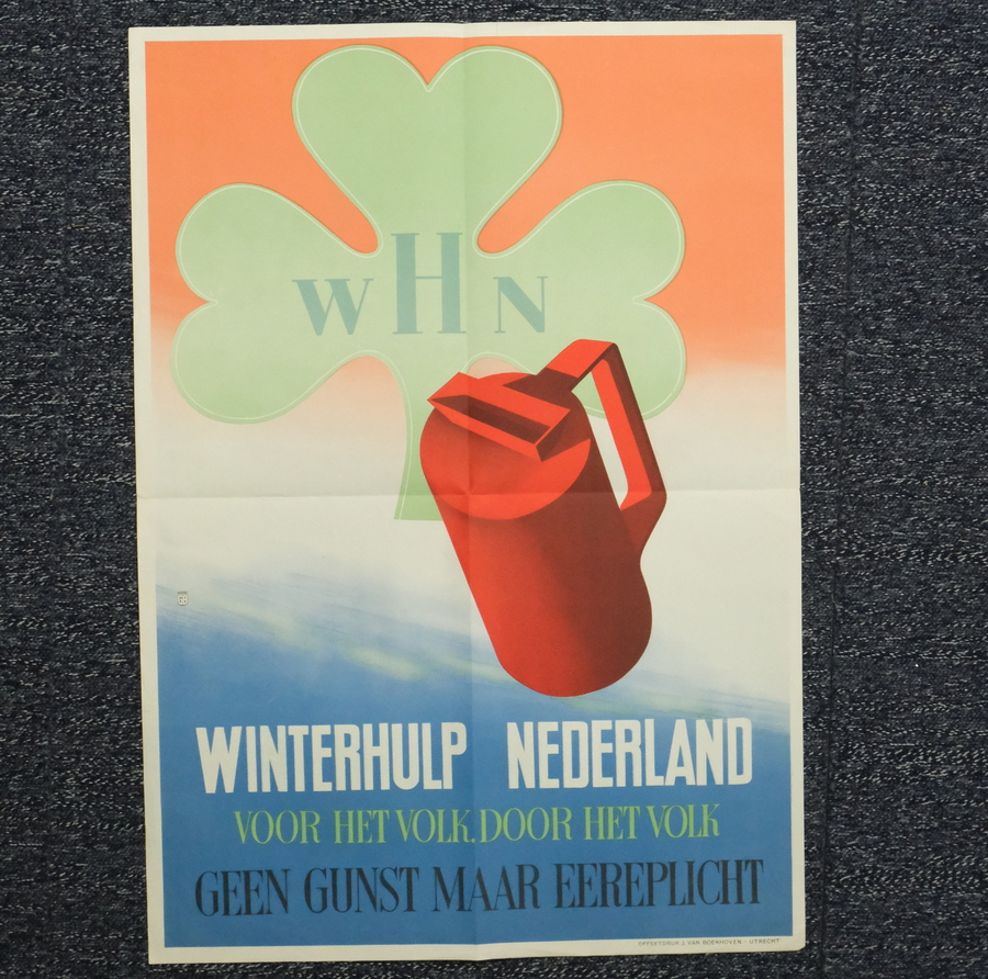 Affiche, 'Winterhulp Nederland Voor het volk, door het volk', 'geen gunst maar eereplicht'. Met onderschrift 'offsetdruk J. van Boekhoven, Utrecht'. Gesigneerd (in de druk) Gerbo