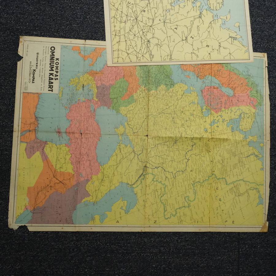 Lot met diverse affiches en kaarten, o.a. 'Kompas Omniumkaart', 'Kaart van Noordelijk Europa' door zeepfabriek de Klok en diverse naoorlogse affiches, o.a. van Harlingen