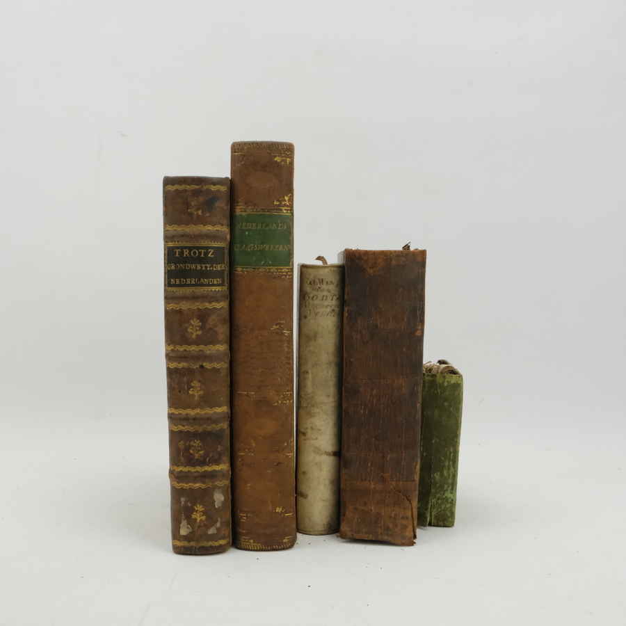 Lot diverse 18e eeuwse boeken: 'de wonderen des allerhoogsten', door Abraham van de Velde, uitgave Nicolaas Byl, 1765, 'Wereltscronykje', door Dirk Kemink & Zoon, Utrecht, 'Verhandeling van ...