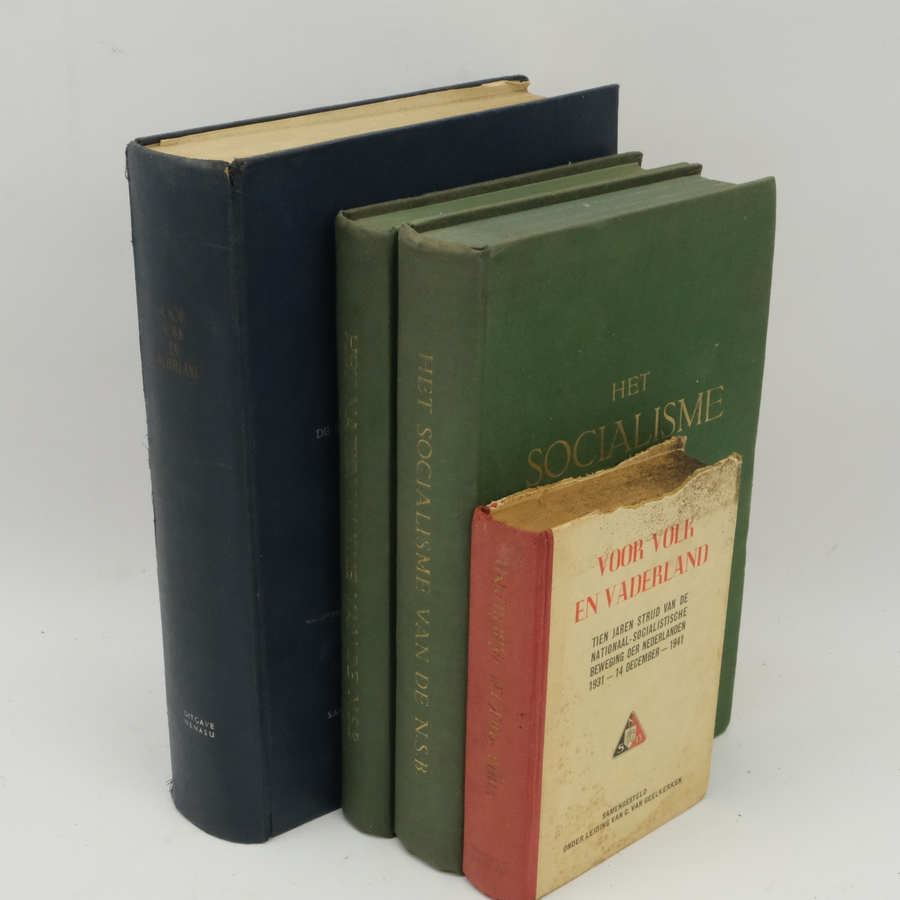 Boek 'Voor Volk en Vaderland, de strijd der Nationaal Socialistische Beweging 14 december 1931 - Mei 1941', samengesteld door C. van Geelkerken, uitgave Nenasu 1941. Met daarbij 2x 'het national...