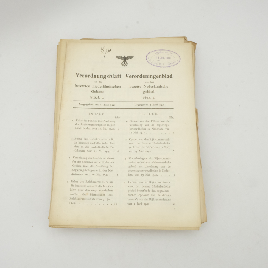 Lot diverse Verordeningsbladen voor het bezette Nederlandsche gebied. Periode 1940-1942
