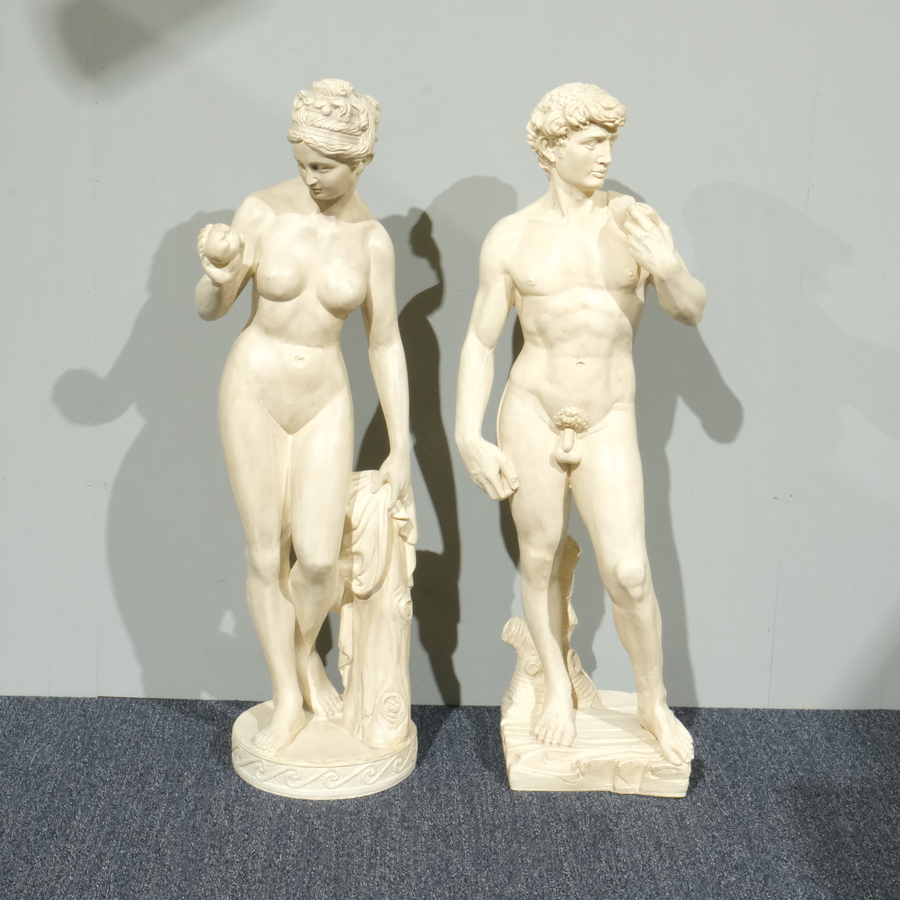 Lot van twee kunststof sculpturen, voorstelling van Griekse goden