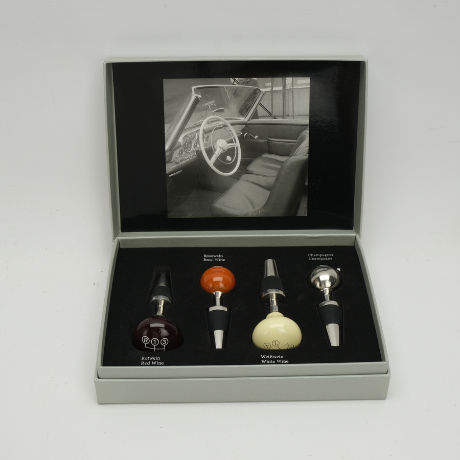 Lot van vier Mercedes-Benz wijnstoppen in de vorm van pookknoppen.