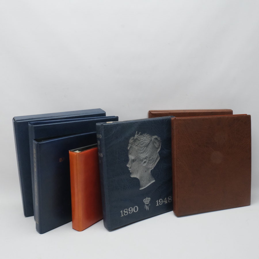 Postzegelverzaming met o.a. twee zilveren postzegels, 25 september 2001, twee albums met eerstedagenveloppen en velletjes met postzegels, o.a. Kinderpostzegels. Tevens acht albums met Nederland ...