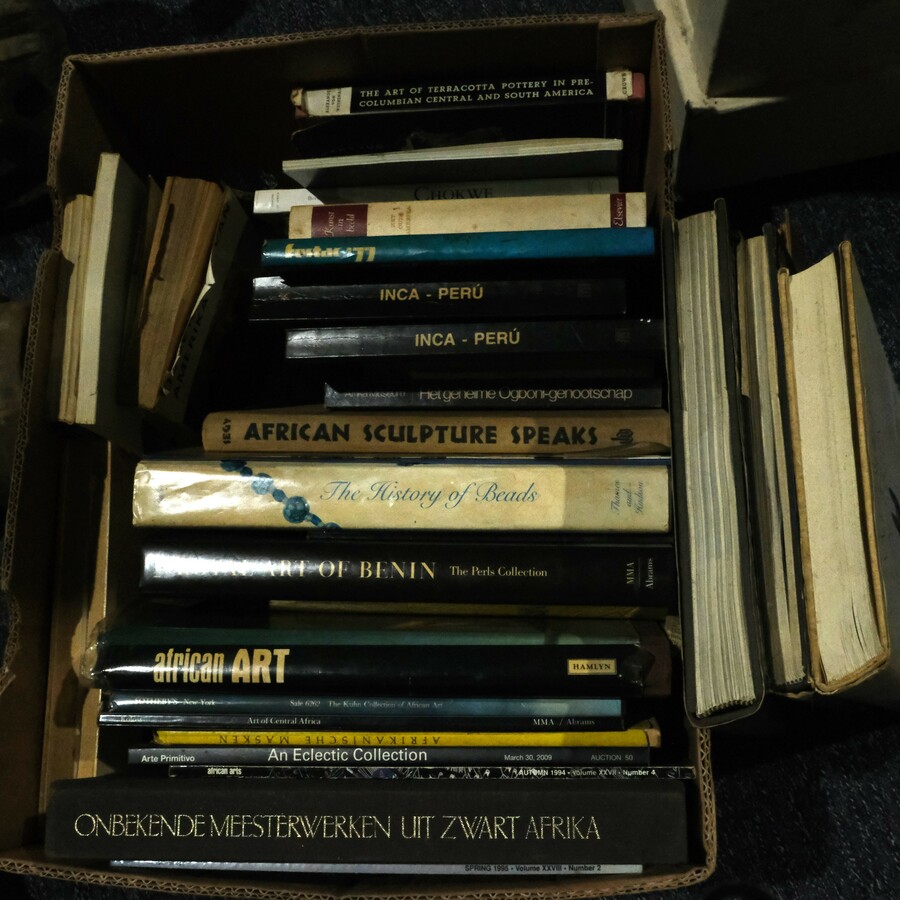 Een collectie kunstboeken over Afrikaanse en Zuid Amerikaanse kunst.