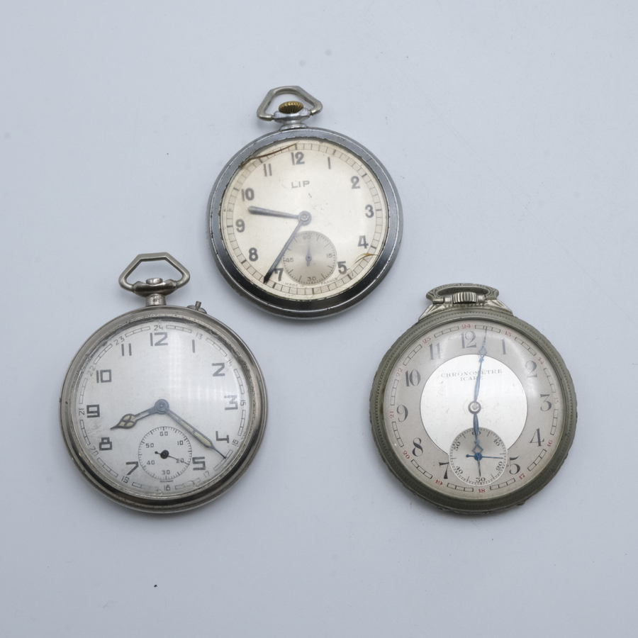 Lot van drie jaren '30 zakhorloges, Art Deco stijl, twee gemerkt 'Lip' & 'Chronometre Icare'