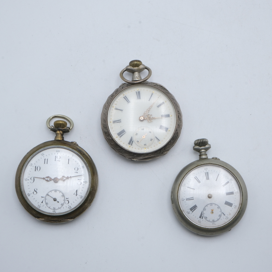 Lot van drie zilveren en verzilverde herenzakhorloges