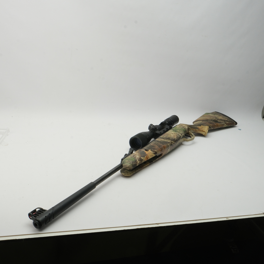 Een luchtbuks van het merk Stoeger, 5,5 mm. Met een kunststof gecamoufleerde kolf en een origineel Stoeger visier. Nieuwwaarde ca 450 euro.