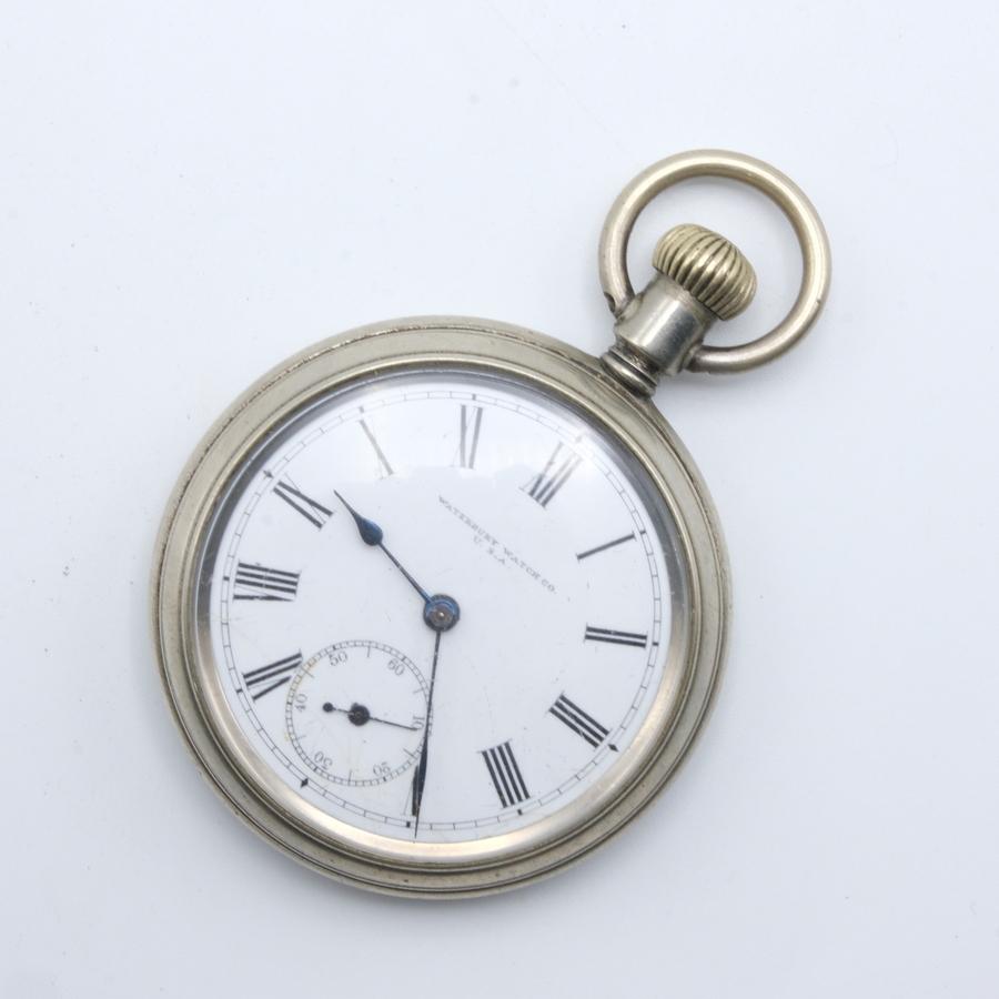 Een antiek 19e of 20e eeuws Amerikaans zakhorloge, gemerkt Waterbury Watch Co. U.S.A. op de wijzerplaat