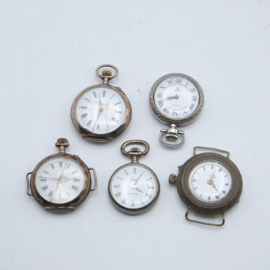 Lot van vijf zilveren en verzilverde dameszakhorloges