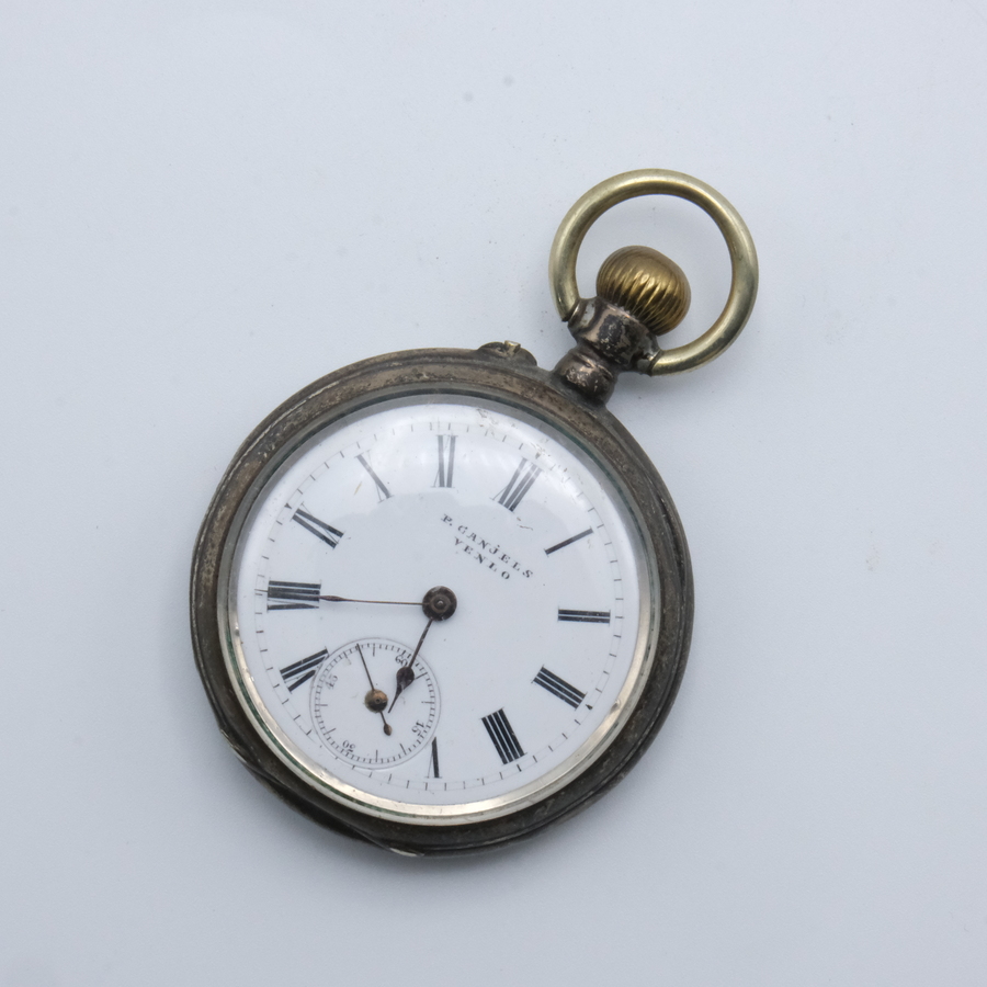 Een 19 eeuws derde gehalte (800/1000) zilveren zakhorloge, gemerkt P. Ganjels Venlo op de wijzerplaat