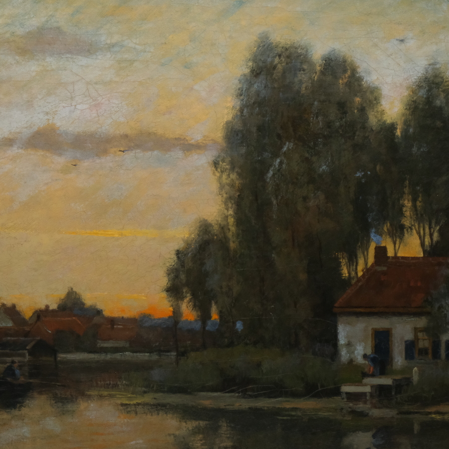Schilderij, olieverf op doek. 'Avond'. Rechtsonder gesigneerd Sieger Baukema (Oudemirdum 1852 - Arnhem 1936)