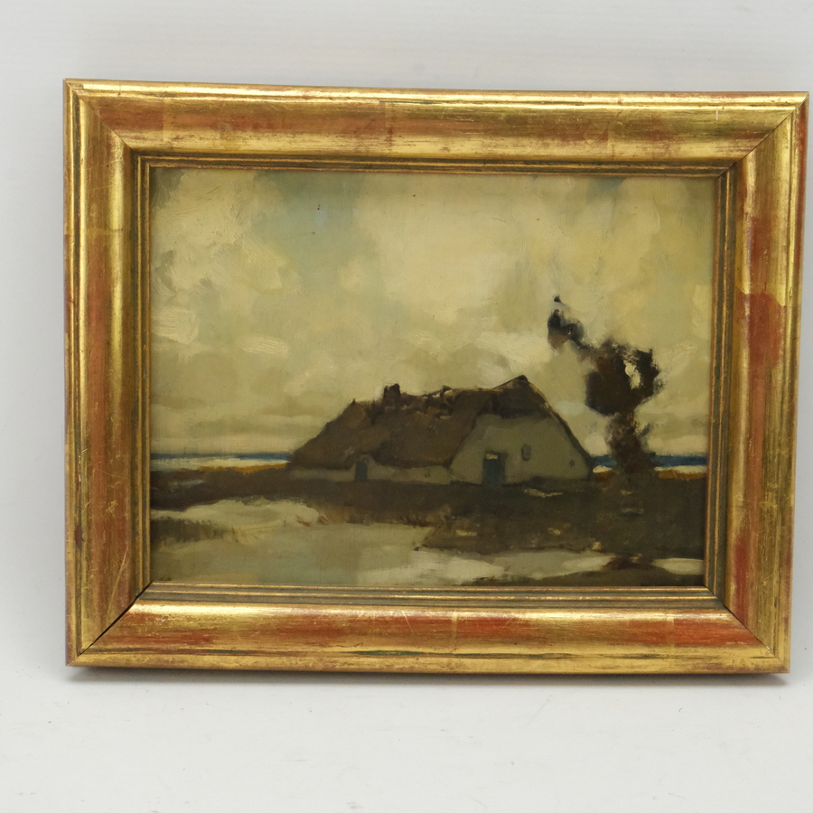 Schilderij, olieverf op paneel. Voorstelling van een boerderij. Gesigneerd Ype Wenning (Leeuwarden 1879 - Wassenaar 1959)