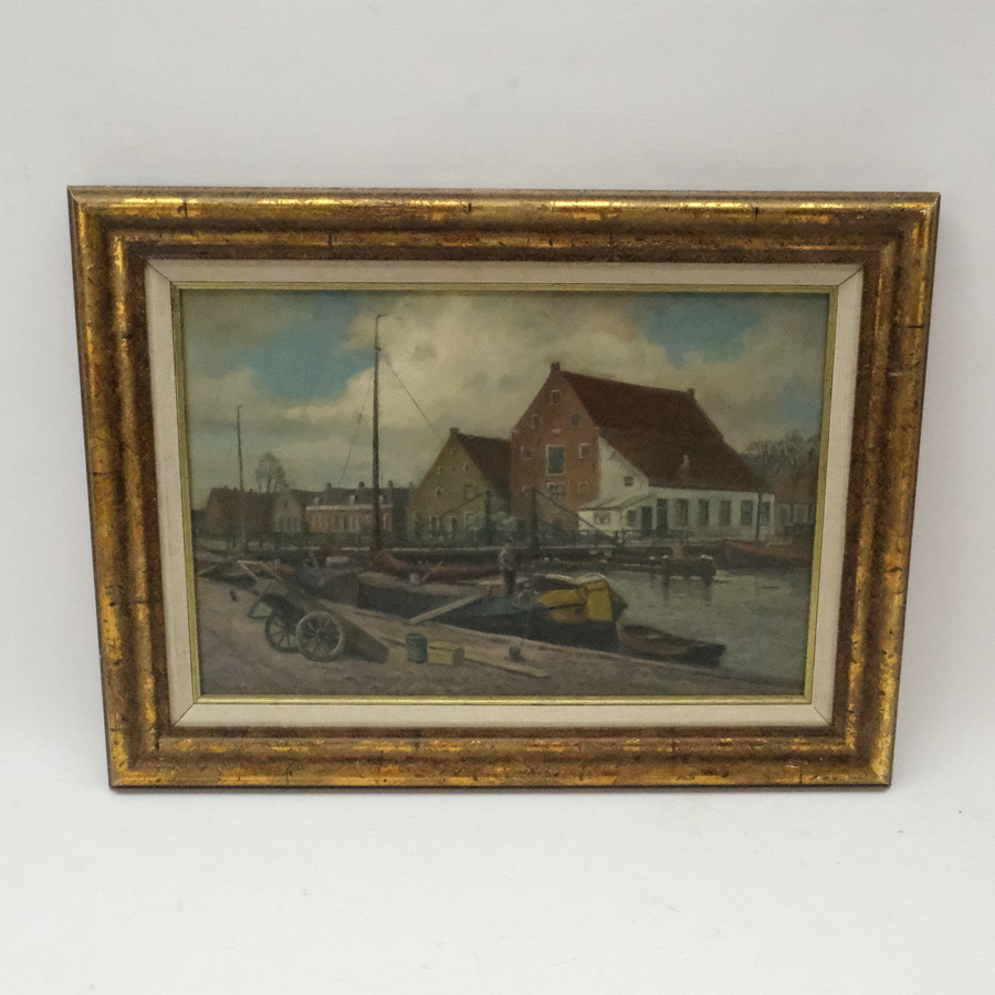 Schilderij, olieverf op paneel. De haven van Lemmer. Linksonder gesigneerd Bouke van der Sloot (Franeker 1908 - Leeuwarden 1995) en gedateerd '87