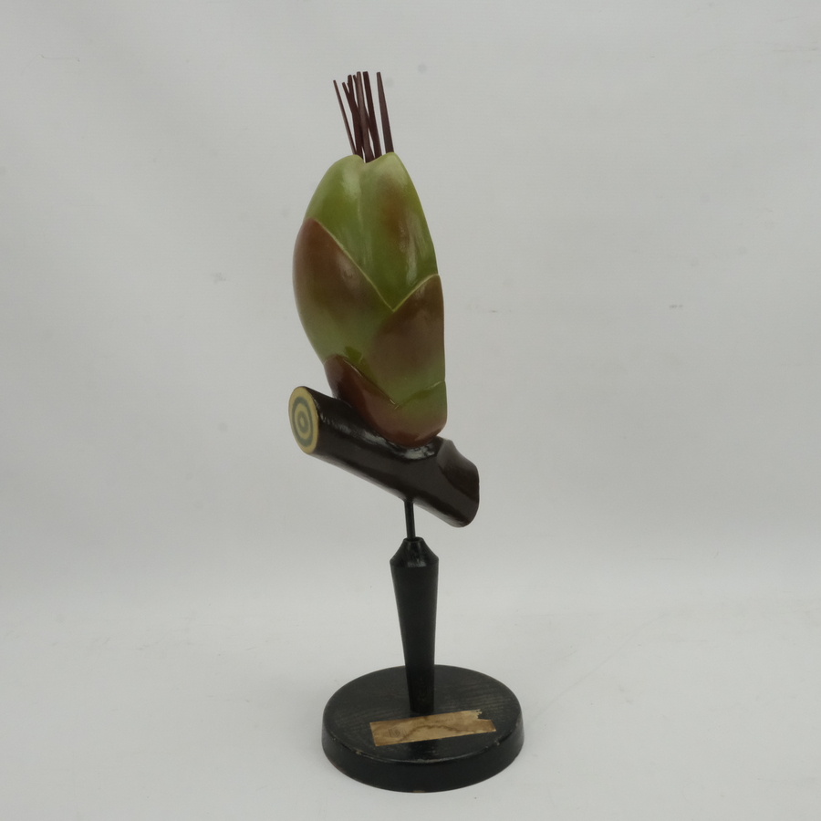Een gekleurd gipsen met houten studiemodel van "Corylus Avellana"/ Hazelaar,vrouwlijke plant in dwarsdoorsnede. Gemaakt door Osterloh, Germany. Ca 1935. Model nr. 64 op de originele houten voet....