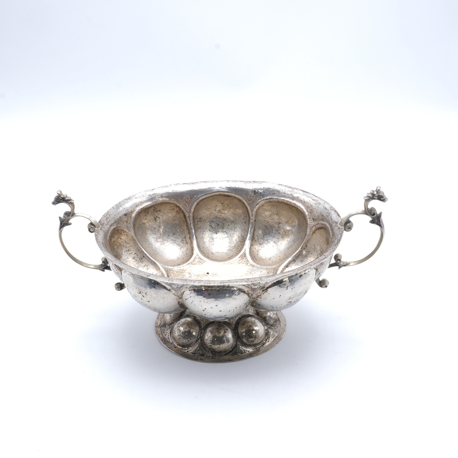 Een 20e eeuwse tweede gehalte (835/1000) zilveren brandewijnkom, Gronings model. Meesterteken 'PH'