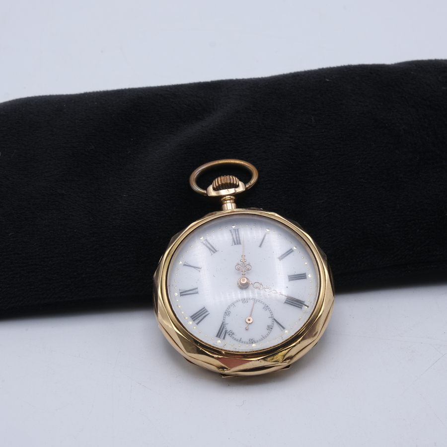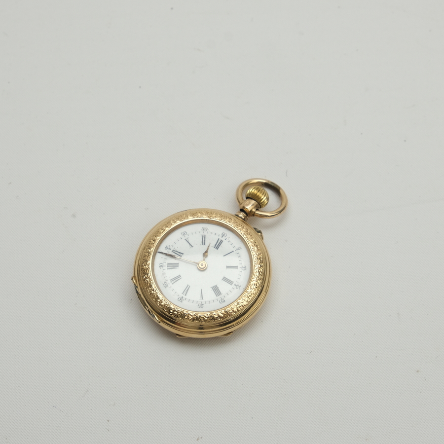Een antiek laat 19e eeuws 14 karaats (585/1000) geelgouden dameshorloge