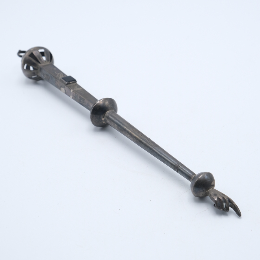 Een 19e eeuws Russisch (84 zolotniki 875/1000)) zilveren Thora pionter, zgn Jatje. Deels gegraveerd en bezet met een vierkante lagensteen. Stadskeur OC voor Minsk. Gedateerd voor 1878.