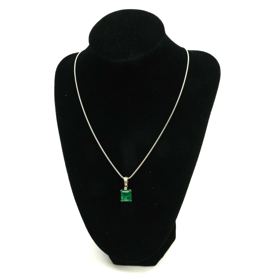 Een 14 karaats witgouden slangencollier met hanger bezet met briljant en smaragd (? 🡪 Uitzoeken)