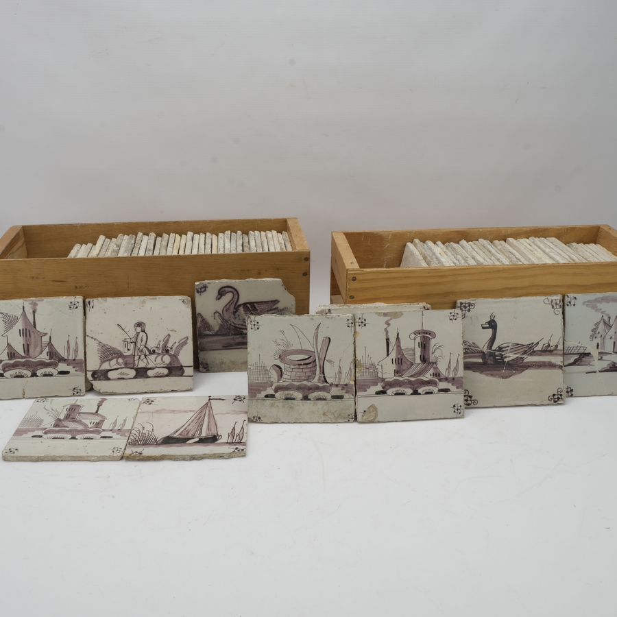 Lot landschapstegels, 19e eeuw (ca. 80x)