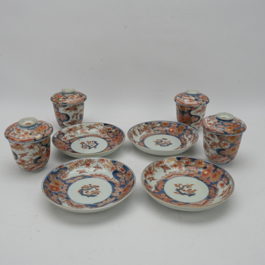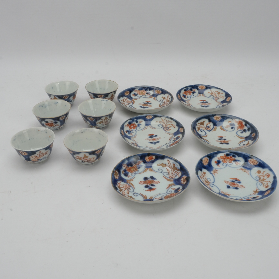 Lot van zes 18e eeuwse Japanse kop en schotels, Edo periode, met floraal imari decor.