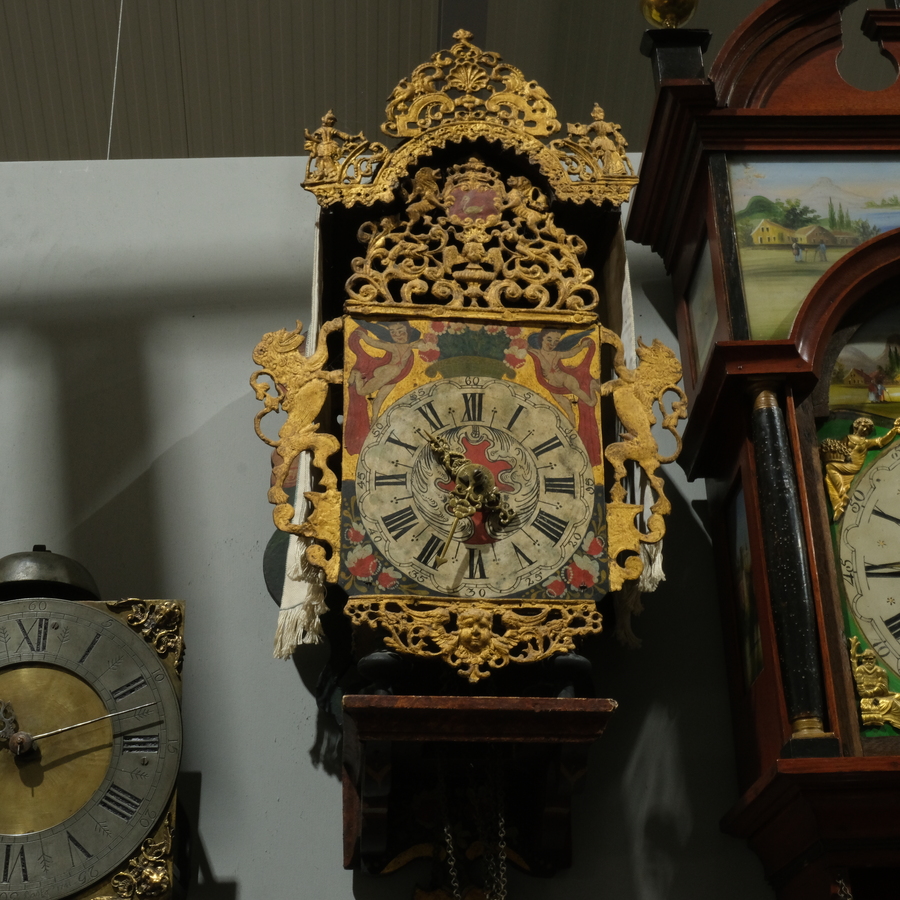 Een 18e eeuwse Friese stoelklok met originele beschildering