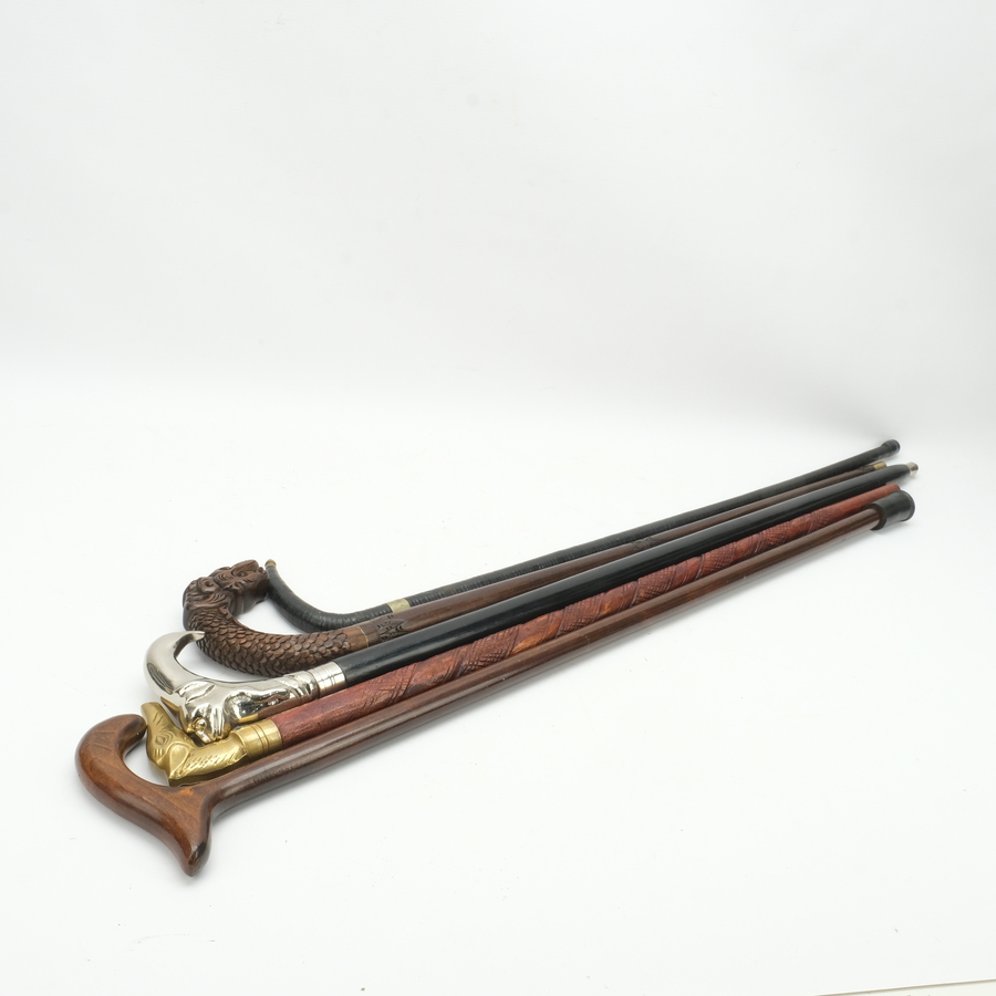 Lot van vijf 20e eeuwse wandelstokken, diverse modellen