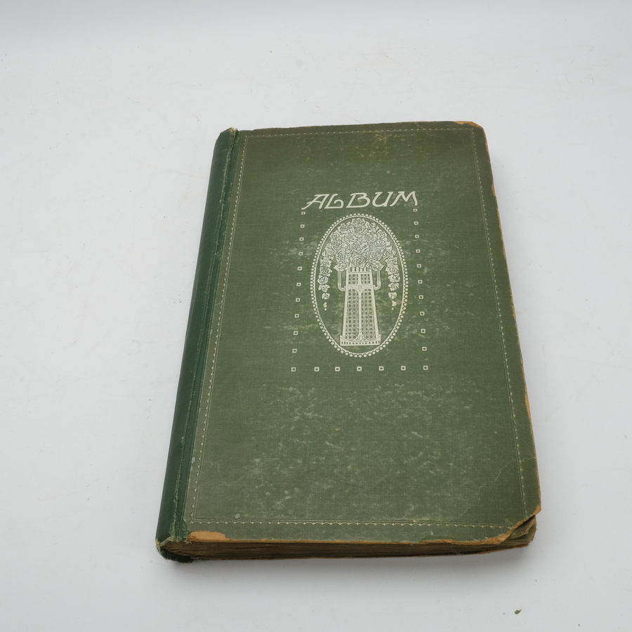 Een jaren '10 of '20 ansichtkaartenalbum met foto's en ansichtkaarten van Volendam, Maastricht, Valkenburg, Aachen, Spa, Leuven, Ardennen en foto's Wereldtentoonstelling
