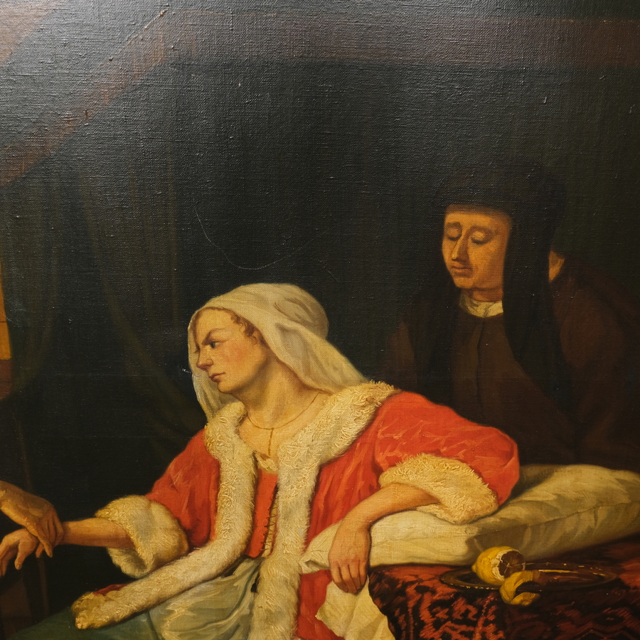 Schilderij, olieverf op doek. Kopie van het werk ‘Liefdesverdriet’ van Jan Steen (1626-1679) uit de Alte Pinakothek, München. Op de achterzijde opschrift ‘Copie naar Jan Steen door A. van de Laa...