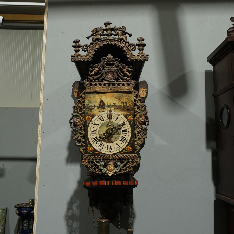 Een 20e eeuwse Friese stoelklok, gesigneerd Christiaan van der Klaauw