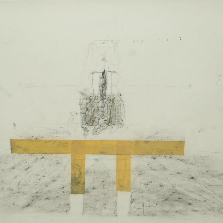 Tekening, abstracte compositie. Gesigneerd Tjibbe Hooghiemstra (Tytsjerk, 1957). Herkomst: galerie Eewal, Leeuwarden