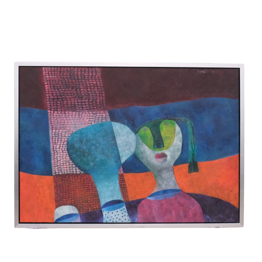 Schilderij, olieverf op doek. Vrouw met paardenstaart'. Rechtsboven gesigneerd Boele Bregman (Aengwirden 1918 - Heerenveen 1980), gedateerd 1969
