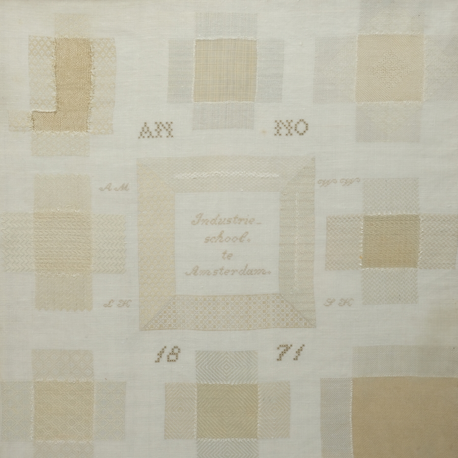 Een 19e eeuwse stoplap. Met opschrift ‘Industrieschool te Amsterdam’ en datering 1871.