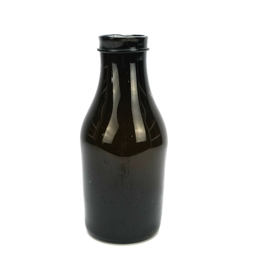 Een antieke groen glazen zaadfles, 19e eeuws.