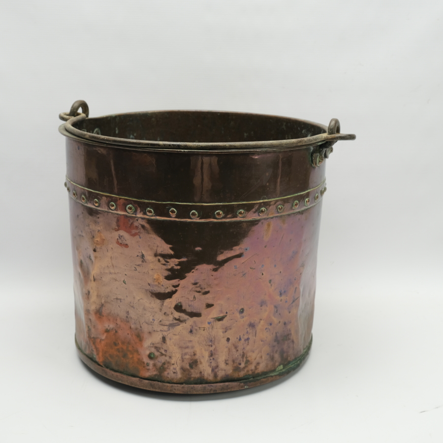 n antieke geklonken koperen aker/melkemmer. Vroeg 20e eeuws.