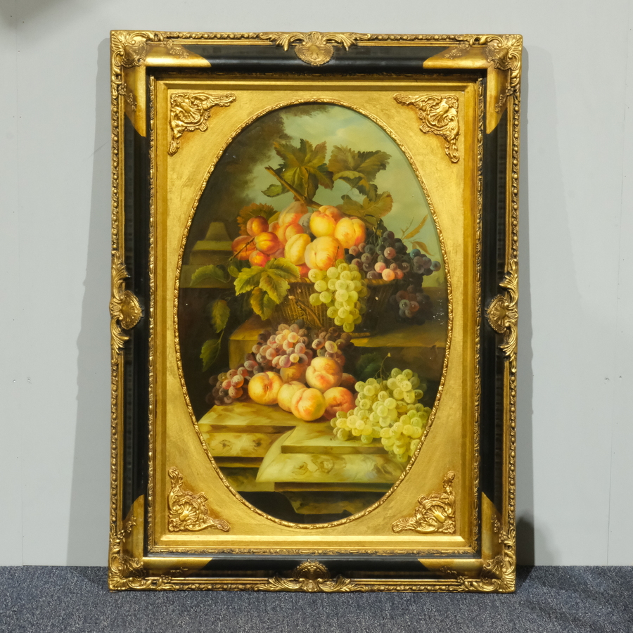 Schilderij, olieverf op vierkant doek. Fruitstilleven. Ongesigneerd