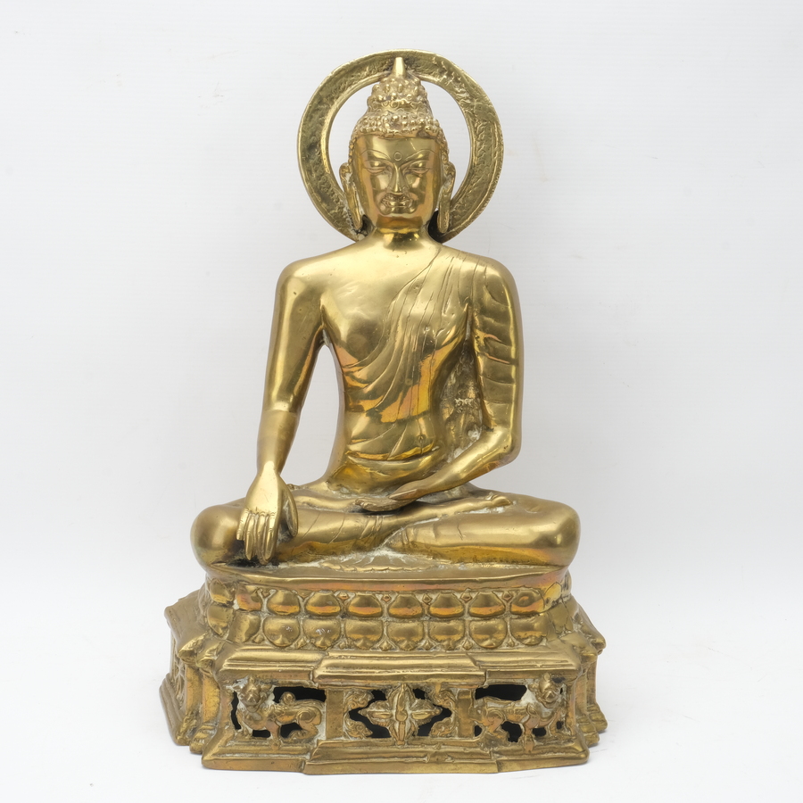 Een 20e eeuws bronzen beeld van een Boeddha, 38 cm hoog