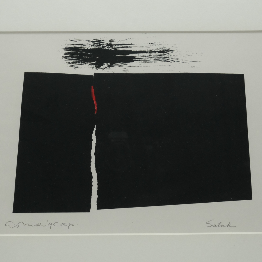 Zeefdruk op papier, abstracte vlakken. Gesigneerd Jan Loman (Bolsward 1918 - Beetsterzwaag 2006)