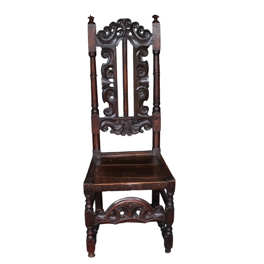 Een antieke laat 17e eeuwse Engelse eikenhouten stoel, ca. 1680