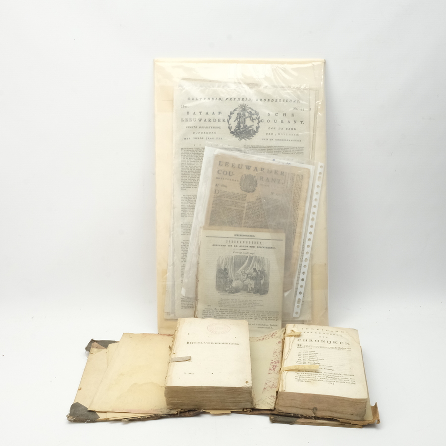 Lot diverse 18e eeuwse boeken en kranten, waaronder Bataafsche Leeuwarder Courant